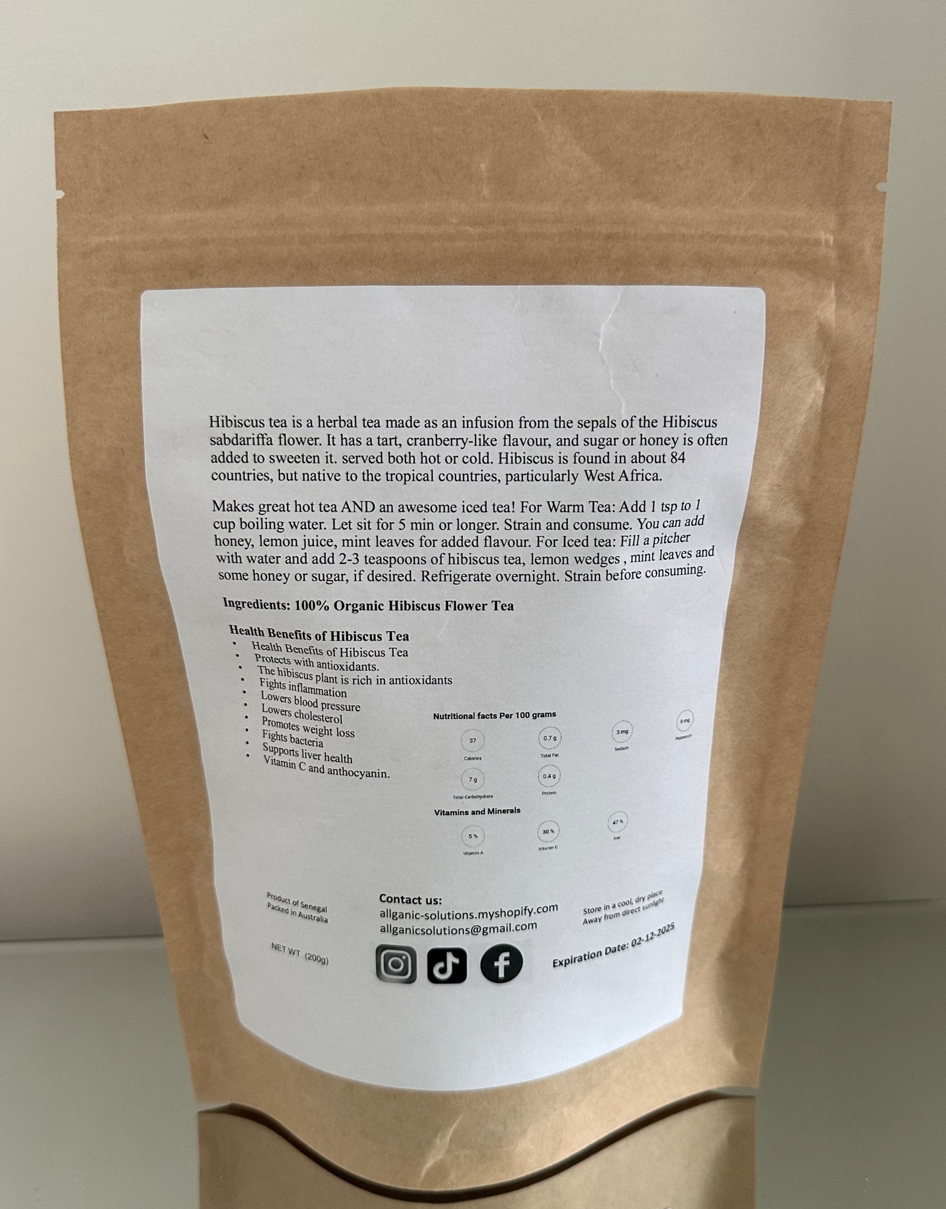 Ingredients: 100% Organic Hibiscus Flower Tea